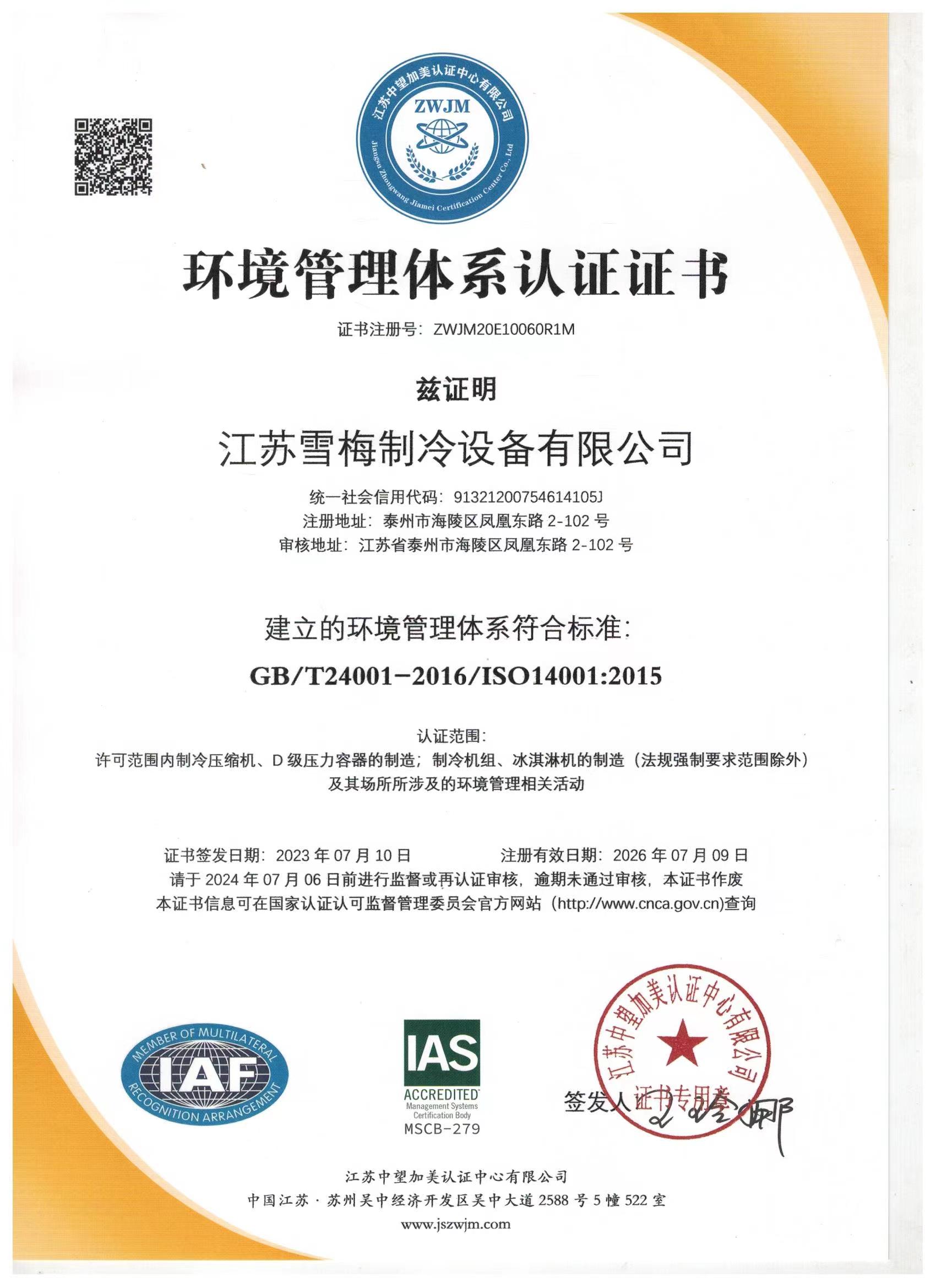 江蘇雪梅制冷設備有限公司
